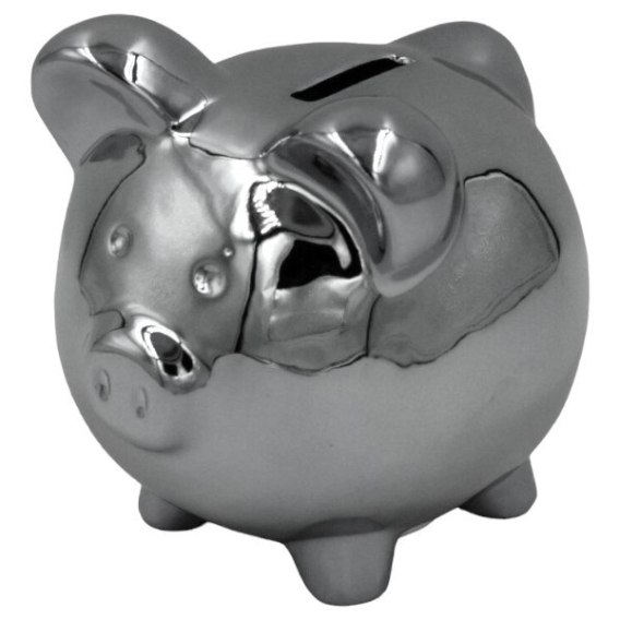 Skarbonka ŚWINKA ceramiczna lustrzana otwierana srebrna