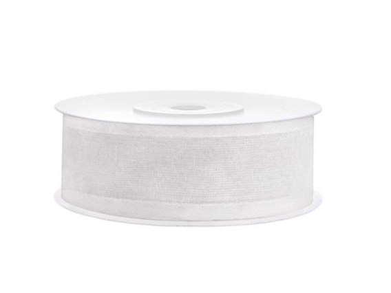 Tasiemka SZYFONOWA ozdobna 25mm rolka 25m BIAŁY