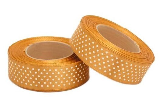 Tasiemka satynowa w kropki 12mm 22m złoty