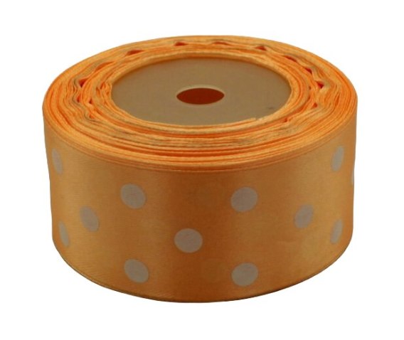 Tasiemka satynowa w kropki 38mm 23m pomarańcz