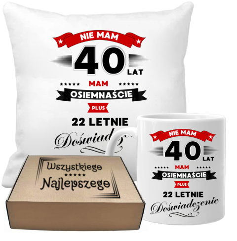 Zestaw poduszka i kubek oryginalny prezent 40 lat na urodziny