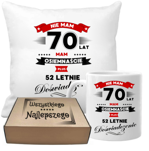 Zestaw poduszka i kubek oryginalny prezent 70 lat na urodziny